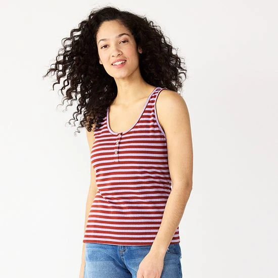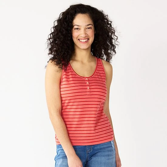 A slubbed cotton blend and striped print make this women’s Sonoma Goods For Life tank top a summer must-have.